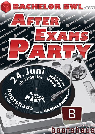 Nach Statistik, der letzten Klausur, gilt es am 24.6 ab 21:00 Uhr die Semesterferien bzw. das anstehende Auslandssemester im »bootshaus gebührend einzuläuten.